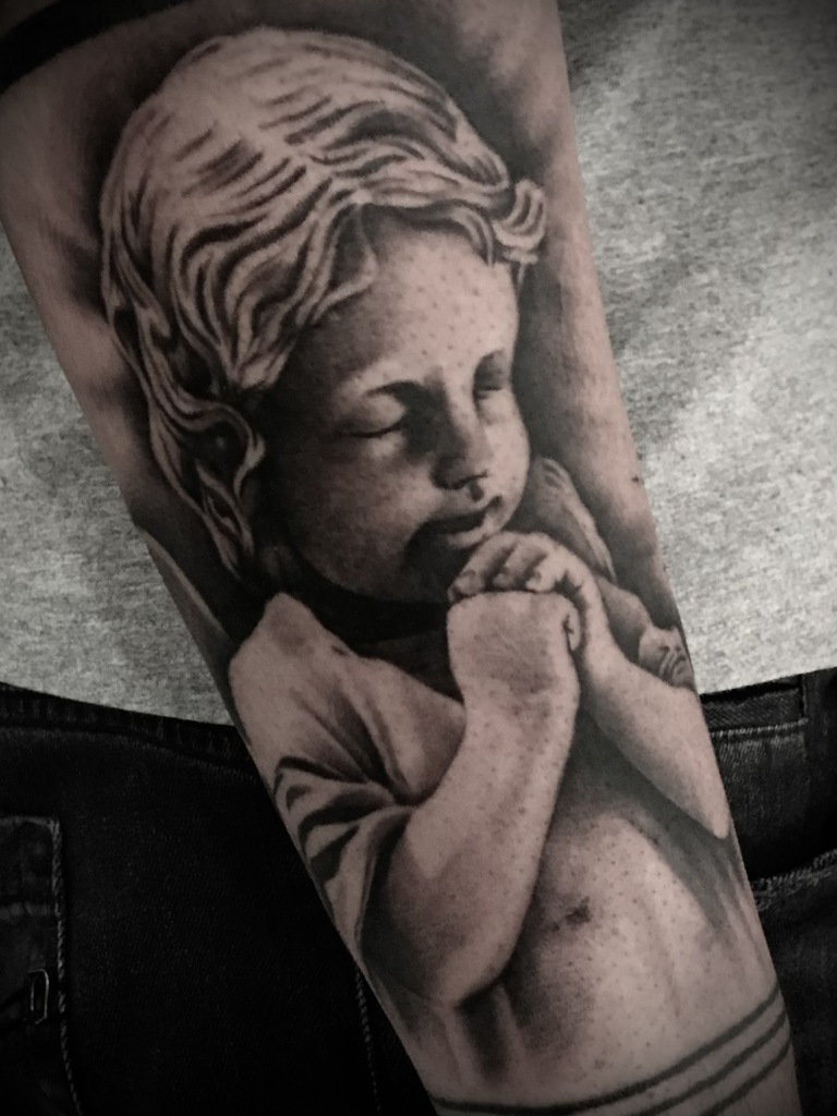 Spécialisé dans le tatouage réaliste noir et gris, le graphique, le blackwork et le dotwork, je crée des pièces sur mesure pensées selon votre idée, votre morphologie et votre sensibilité artistique.